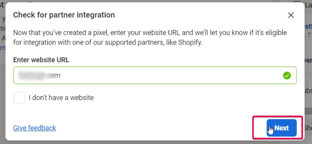 It will then ask you to provide the URL of the CRM's website/funnel where you will add your pixel code.