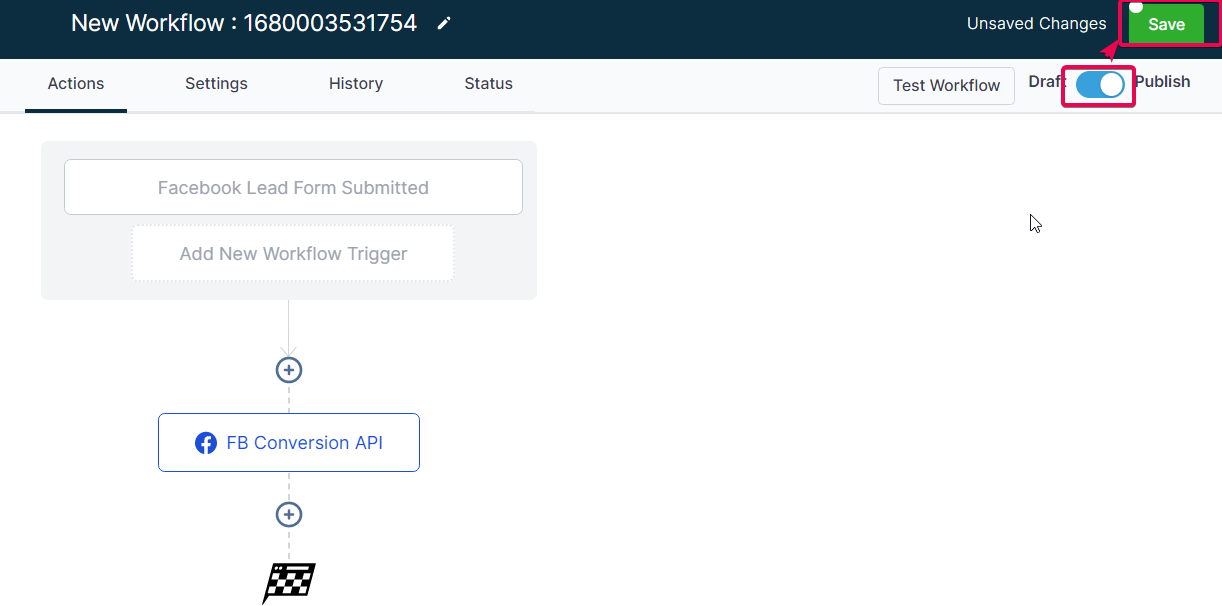 Once complete, Save the Action and then Save and Publish the Workflow.