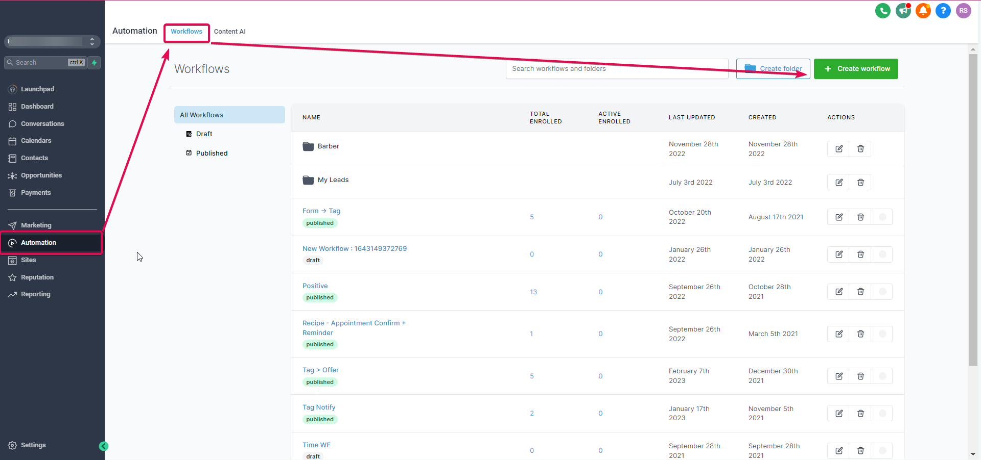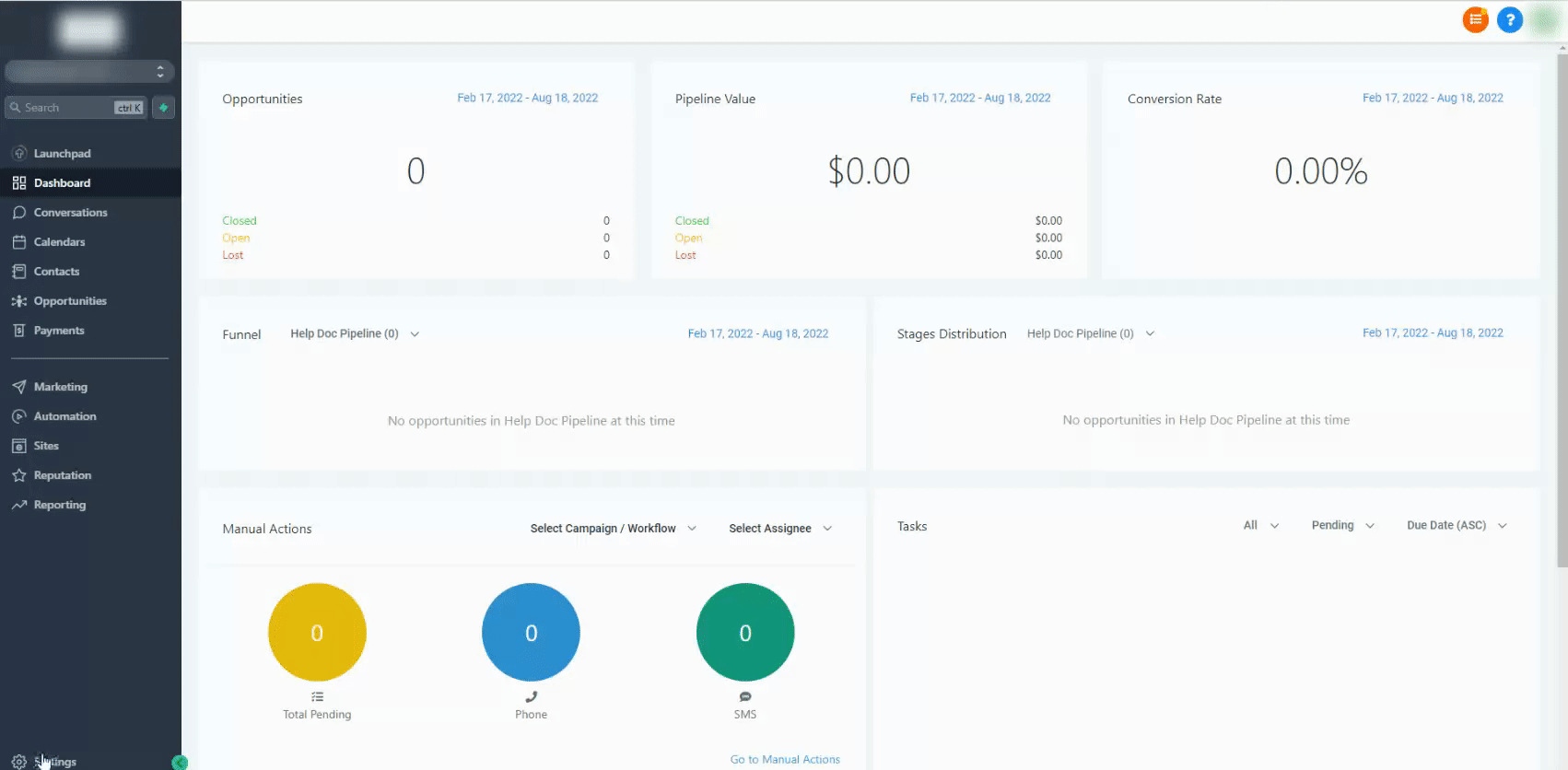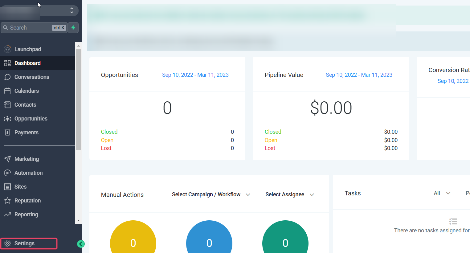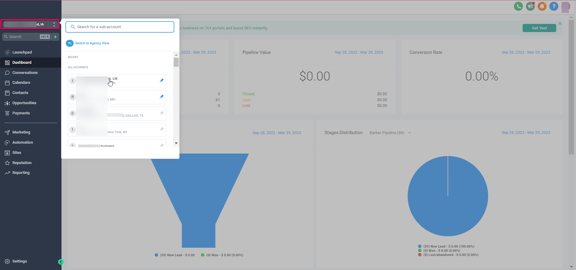 17. Keep this browser tab open and navigate to your CRM account. Navigate to the Sub Account that you are setting up this Pixel for.