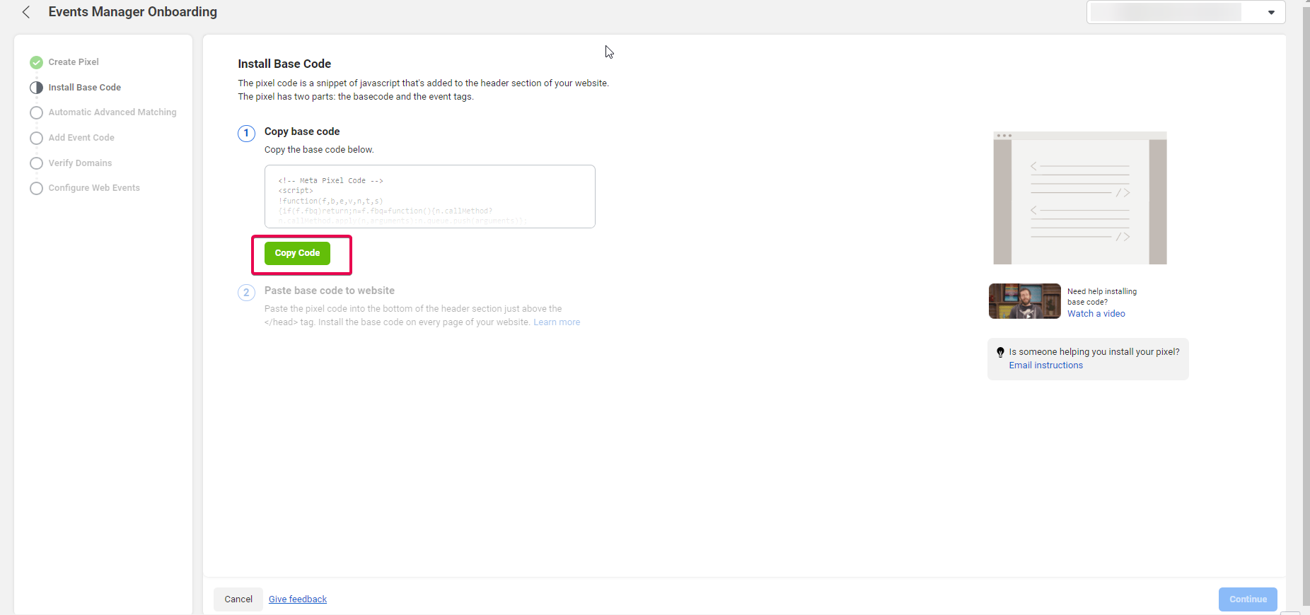 Step 2: Apply Pixel Code to your Funnel/Website.