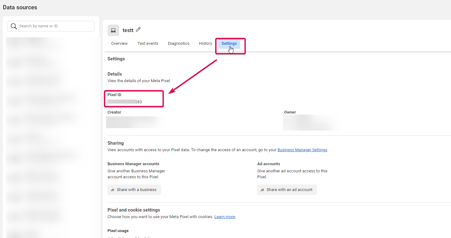 29. Head over to the Events Manager tab where you were creating a Pixel. Search for the name of the Pixel you were working on.