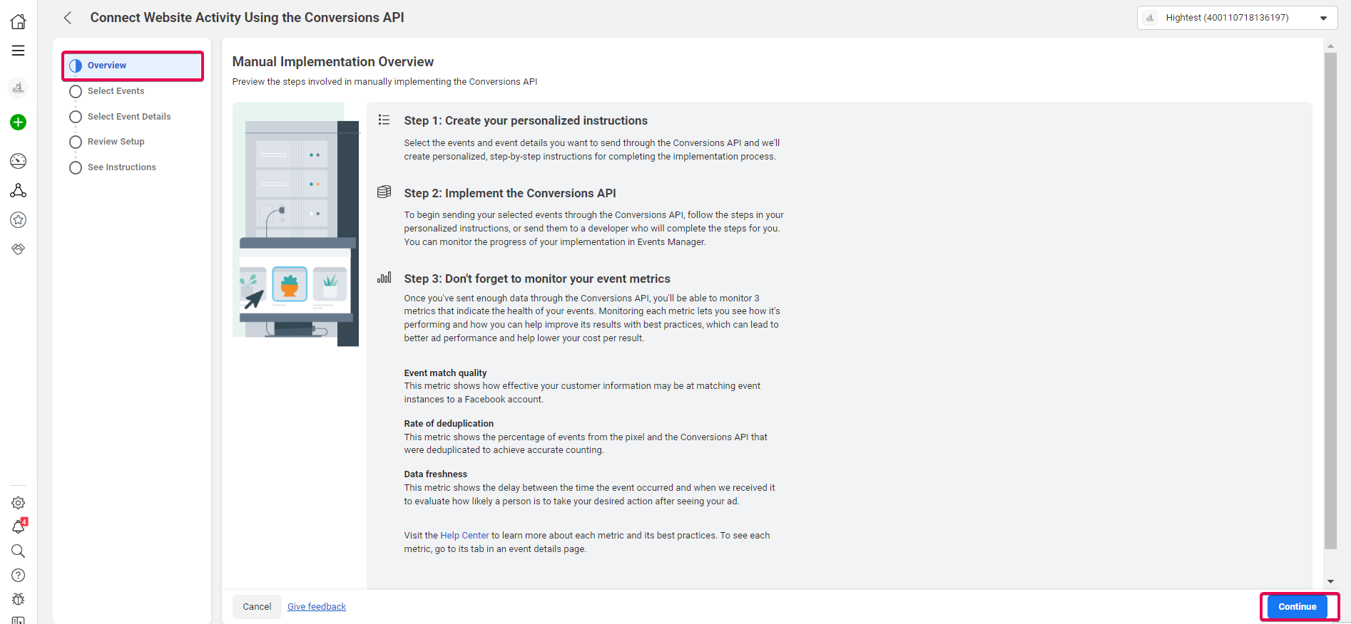 9. It will take you to the Overview tab for the Manual Implementation process. Read through the instructions and then click on Continue.